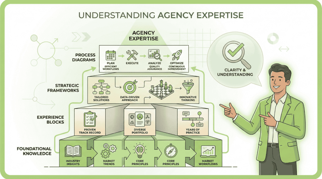 Alt text: Agency expertise: Mastering strategic frameworks, data-driven insights, and continuous improvement for optimal results.