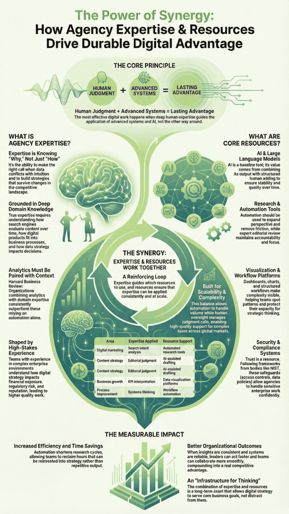 Agency expertise and resources support verifiable outputs when sources are clear and reasoning is traceable. This matters for academic, financial, and regulated environments, but also for everyday marketing decisions.
