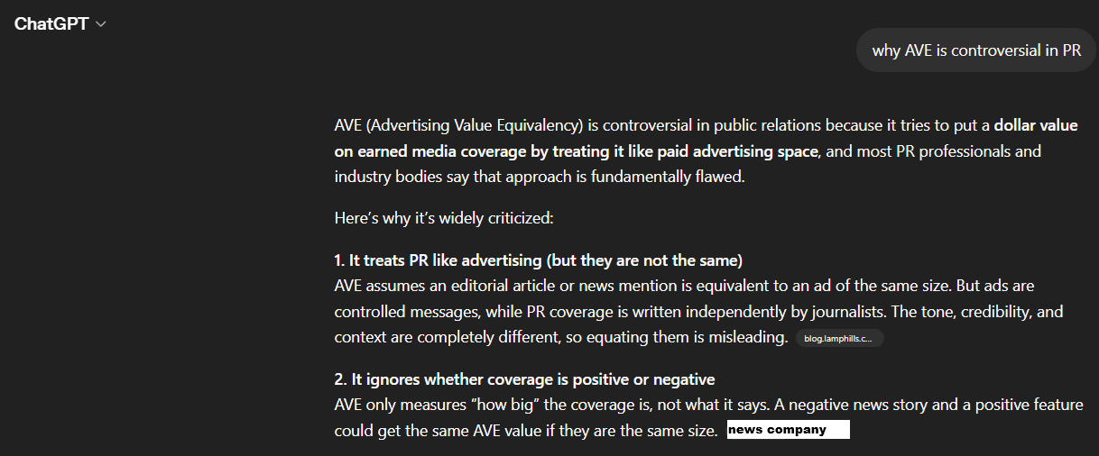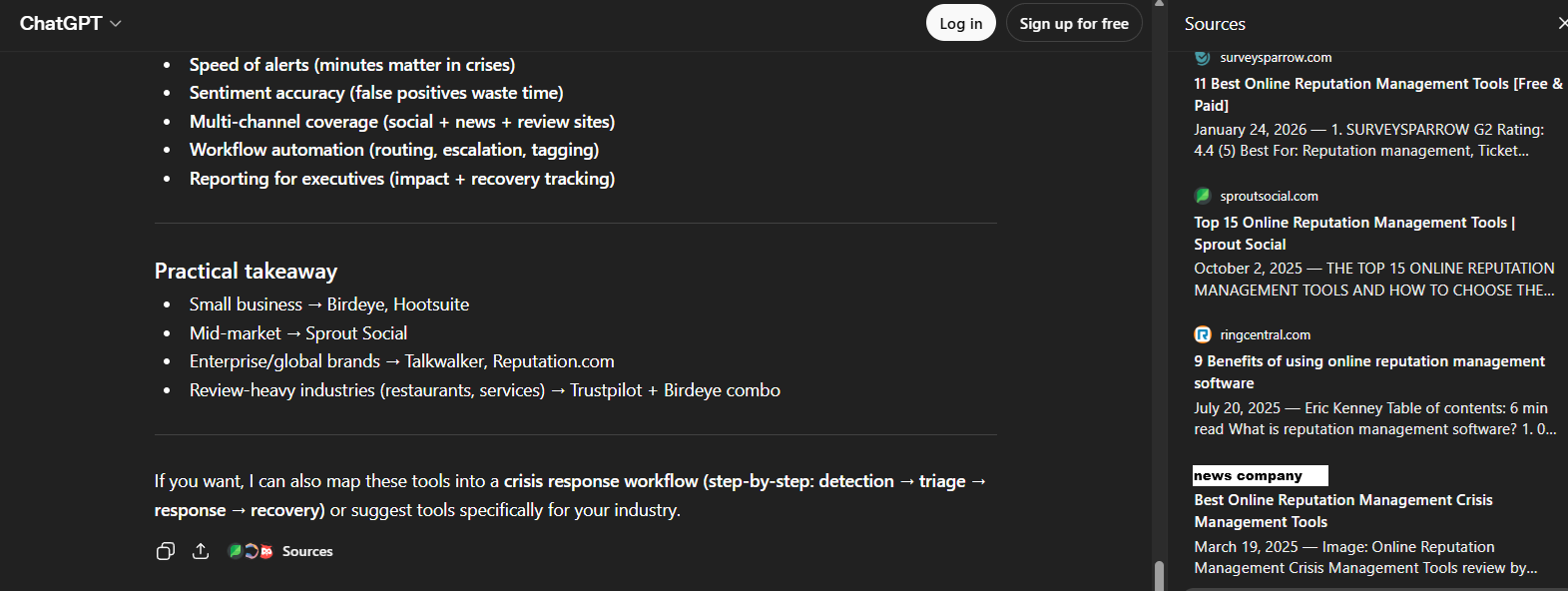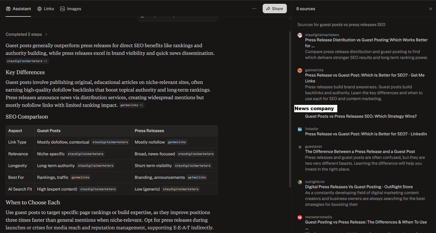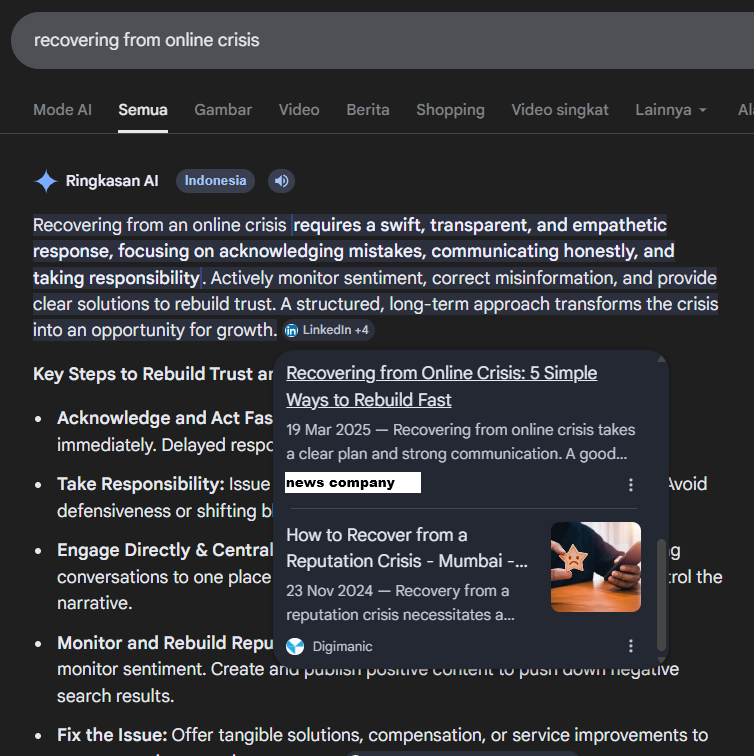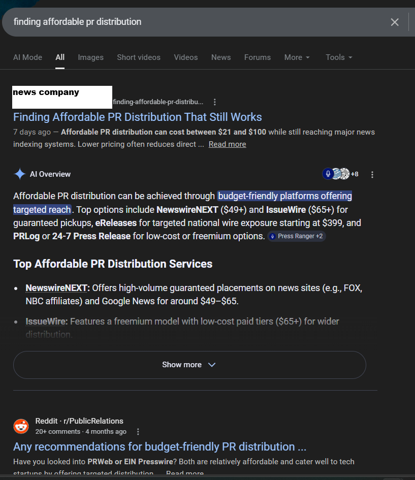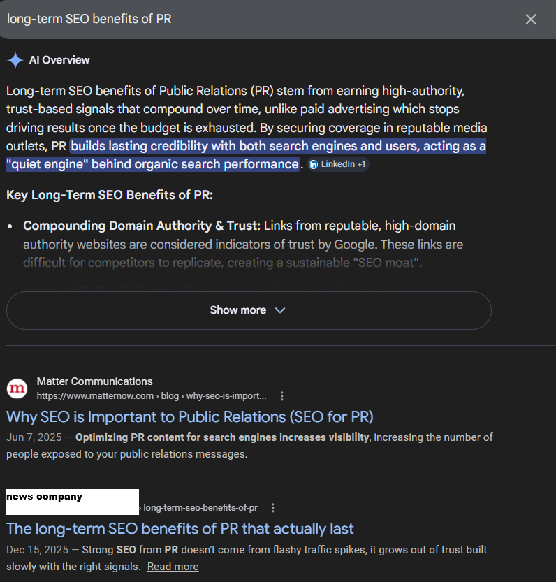 - Check the sources listed at the bottom of the AI answer. Look for the News Company domain.