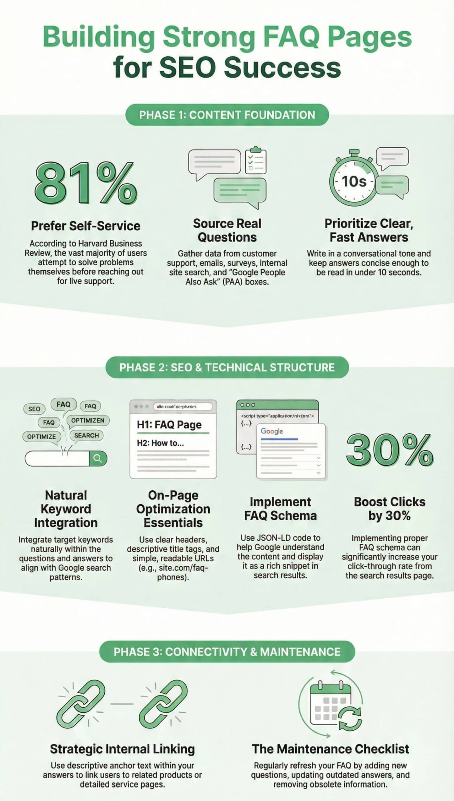 Finally, implement FAQ schema code so search engines can feature your answers directly in results. This mix of genuine research, plain language, and simple tech leads to more visibility and happier users.