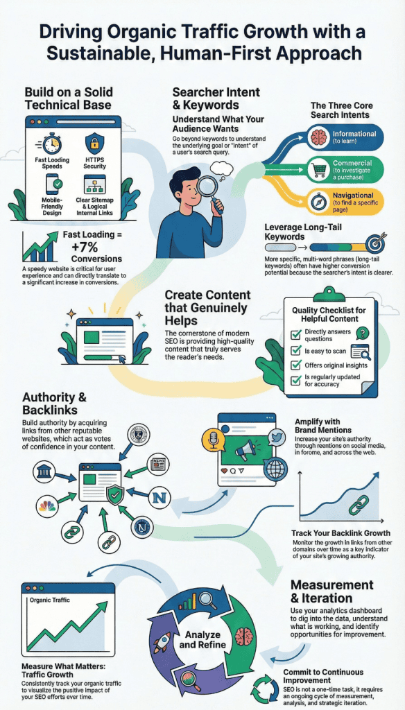 Driving organic traffic growth is a marathon, not a sprint. It requires patience and a systematic approach that prioritizes strong foundations over short-term tricks. By strengthening your technical SEO, creating content that genuinely serves search intent, and steadily building authority, you create a traffic engine that compounds over time.