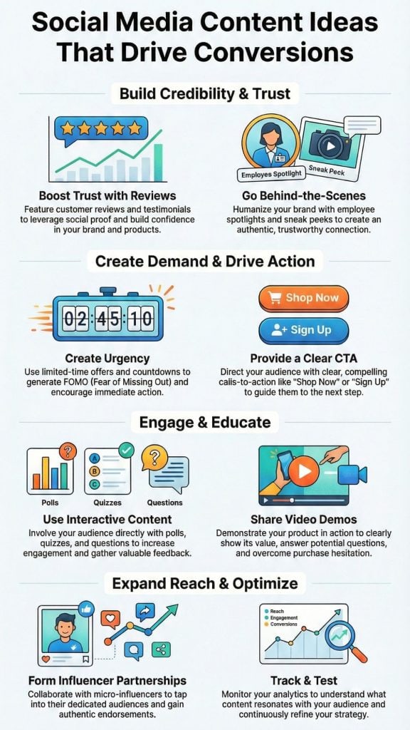 This isn’t about posting more. It’s about posting smarter. We’ve compiled the most effective content ideas that bridge the gap between a scroll and a sale. Keep reading to learn how to fill your calendar with posts that deliver real results in Social Media Content Ideas That Actually Drive Conversions
